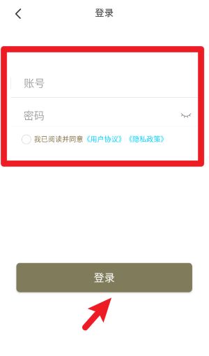 1、打开APP,在登录页面输入账号与密码,并勾选协议后点击下方“登录”按钮完成账户登录操作。