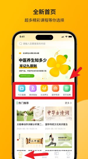 3、在首页浏览丰富课程分类内容,点击图标或课程封面即可进入对应学习模块开始学习。
