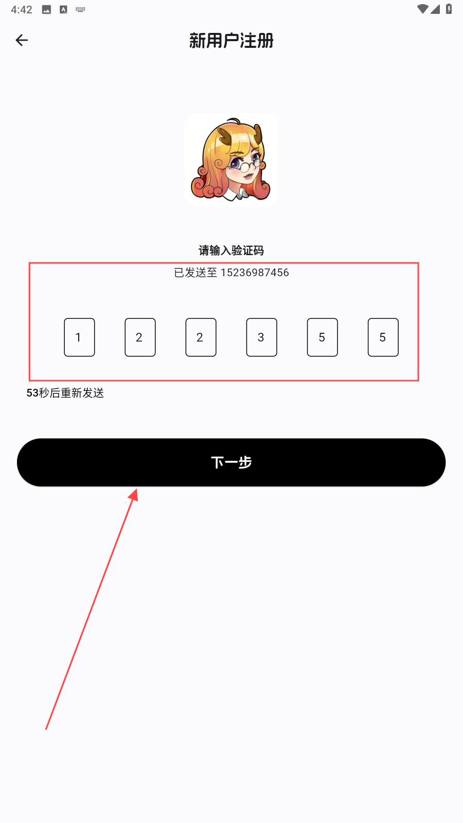 3、输入验证码,点击【下一步】。