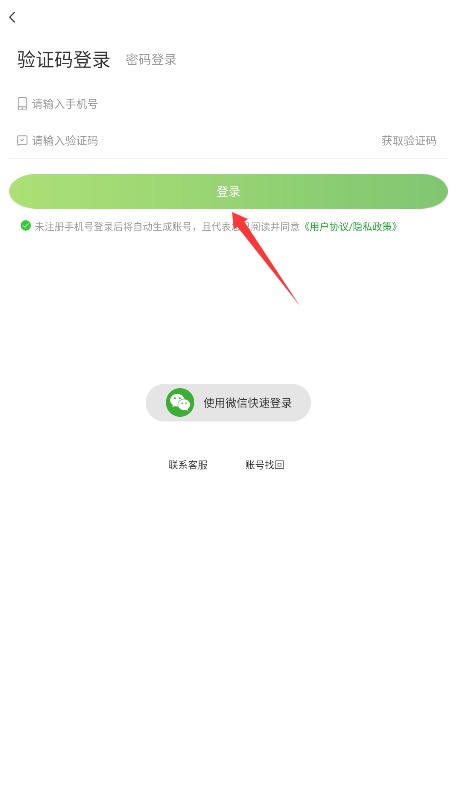 2、进入登录界面输入手机号和验证码,勾选同意协议后点击登录即可进入应用主界面。