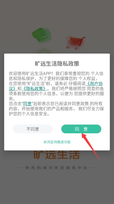 1、初次使用需阅读平台服务条款与隐私政策,确认后点击同意按钮进入应用。
