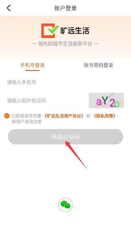 2、输入手机号完成图形验证,勾选同意选项后点击获取验证码输入后即可完成账号登录。