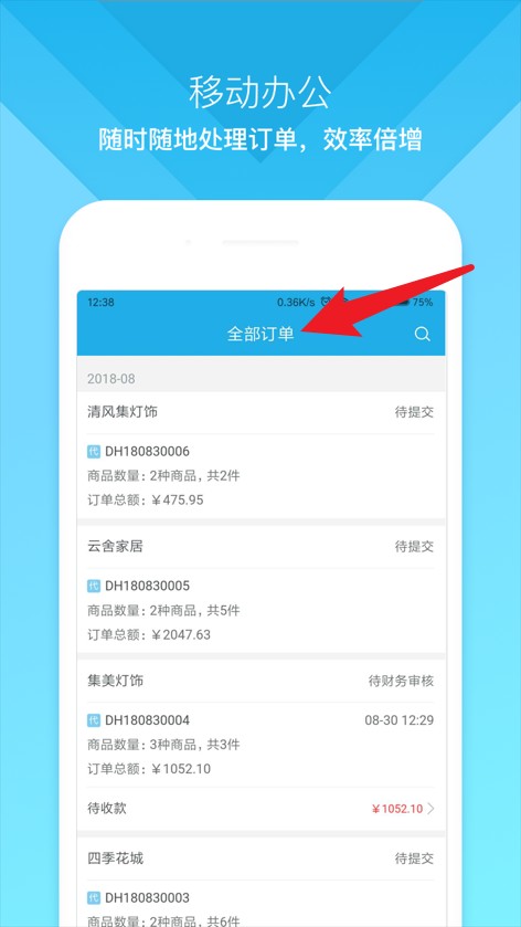 3、在全部订单页面可查看所有历史订单,状态一目了然,方便随时追踪和处理。