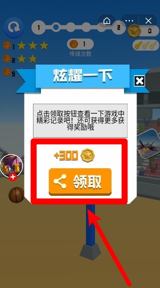2.完成挑战后弹出奖励窗口,点击“领取”按钮并观看广告,可获得额外金币用于后续关卡解锁或兑换内容。