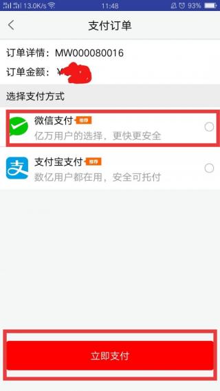 3、勾选【微信支付】,再点击【立即支付】即可。