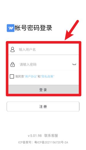 1、打开应用进入账号密码登录页面,输入正确的用户名与密码后勾选协议选项,即可顺利完成账号登录。