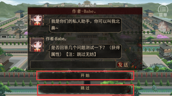 2、点击【开始】进入测试获得属性,点击【跳过】则直接进入剧情。
