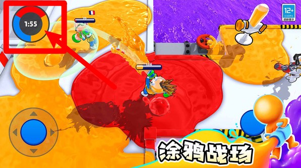 1.油漆涂地玩法:水枪射击融合喷漆作战与地盘争夺元素,玩家需在有限时间内覆盖更多区域,赢得最终胜利。