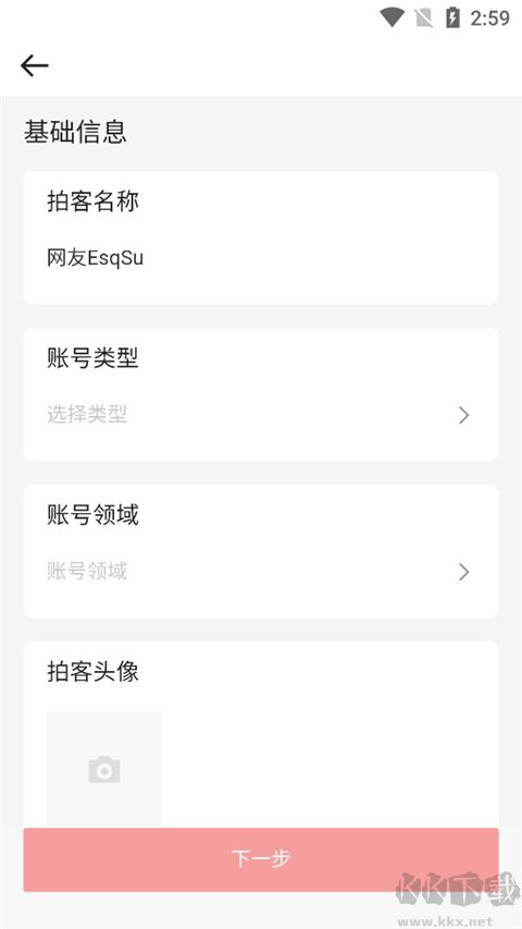 3、填写创作者昵称、账号类别、创作方向、头像等基本信息,点击“下一步”