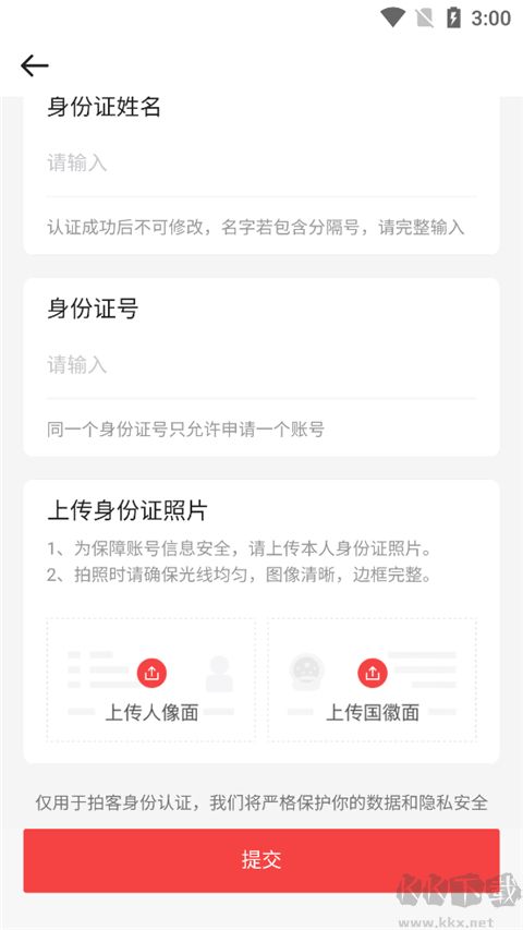 4、 提交身份证信息和证件照片,点击“确认提交”完成认证,之后就可以自由发布视频作品了