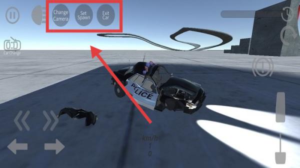 3、车辆不规范驾驶可能报废,可以点击上方【SetSpawn】设置重生点,还可以进行切换视角、下车的操作。