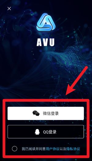 1、打开AVU软件后,需通过微信或QQ账号登录,并勾选协议后才能进入主页面操作功能。