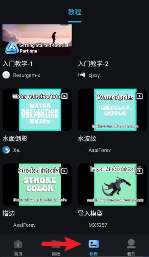 4、点击“教程”栏目可以观看多种视频教学内容,从基础入门到特效制作都有详细操作演示。