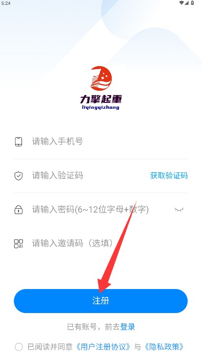 1、输入手机号码和验证码,设置密码并勾选同意协议后点击注册按钮完成创建。