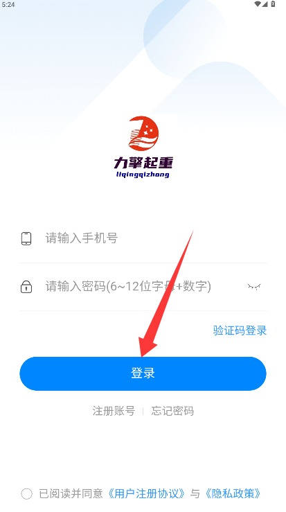 2、在登录页面输入手机号和登录密码,勾选同意相关协议后点击登录进入首页。