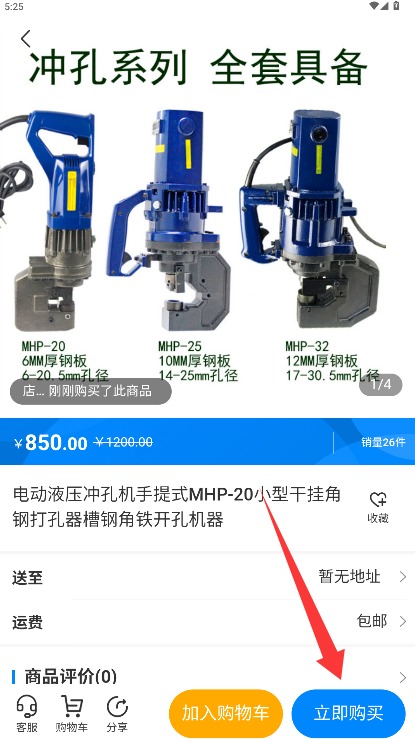 4、进入商品详细信息界面后,点击页面右下角"立即购买"按钮即可完成购买流程。