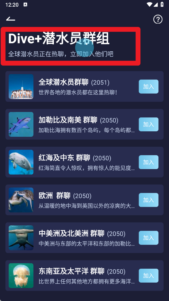 4、群组功能可以加入全球潜水员的讨论群,不同区域的潜水员都在这里交流经验,方便用户获取更多潜水相关资讯。
