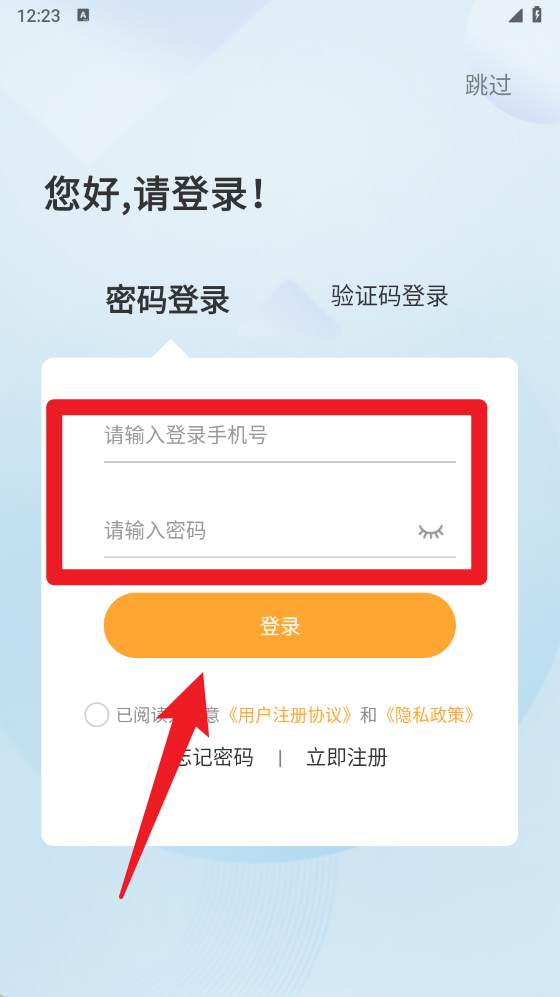 1、在【登录界面】输入注册手机号码与密码,点击登录按钮即可进入系统,方便用户管理和操作物流订单。