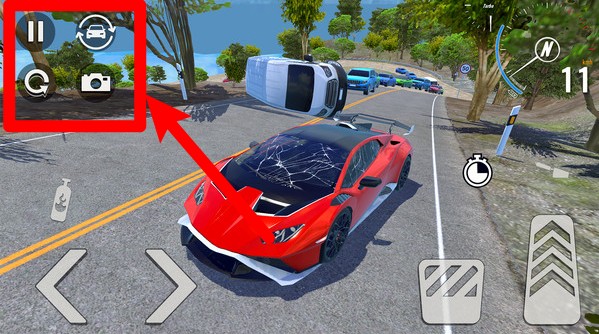 3.左下角的方向控制和右下角的油门刹车按钮需要精准操作,才能顺利通过赛道挑战。