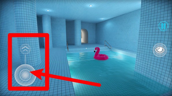 3.界面左下角的圆形虚拟摇杆是角色移动控制,通过拖动摇杆即可在场景中自由探索并寻找隐藏的出口与线索。