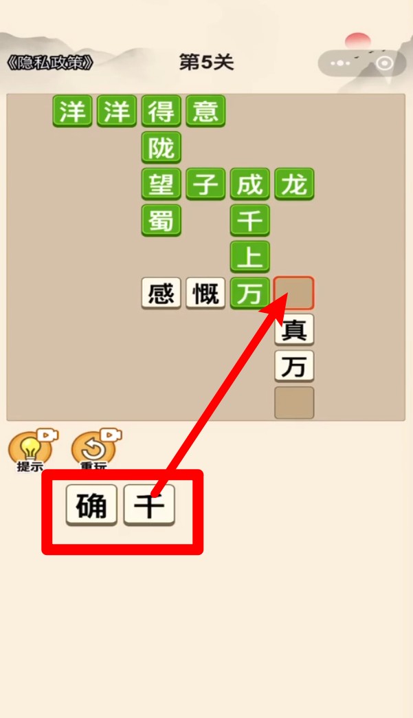 2.填字操作:需将下方的“千”字正确放入空格,完成“感慨万千”等成语组合,通过准确选择获得闯关成功机会。