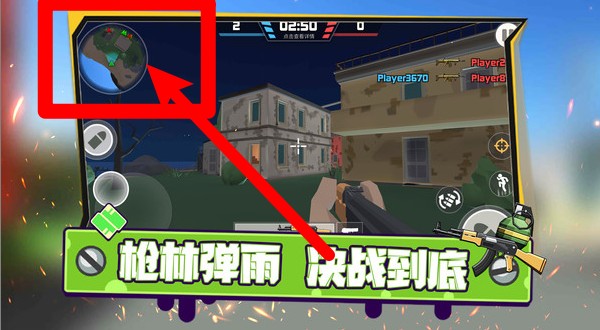 3.战斗场景:实战中玩家需通过小地图观察敌人动向,灵活调整位置与射击策略,在紧张对局中掌控全局赢得胜利。