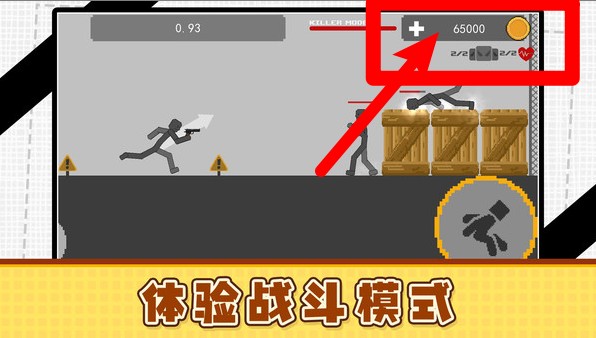 3.战斗模式:战斗模式中可收集金币与道具,右上角显示血量与分数,玩家需击败敌人并避开箱子完成前进挑战。