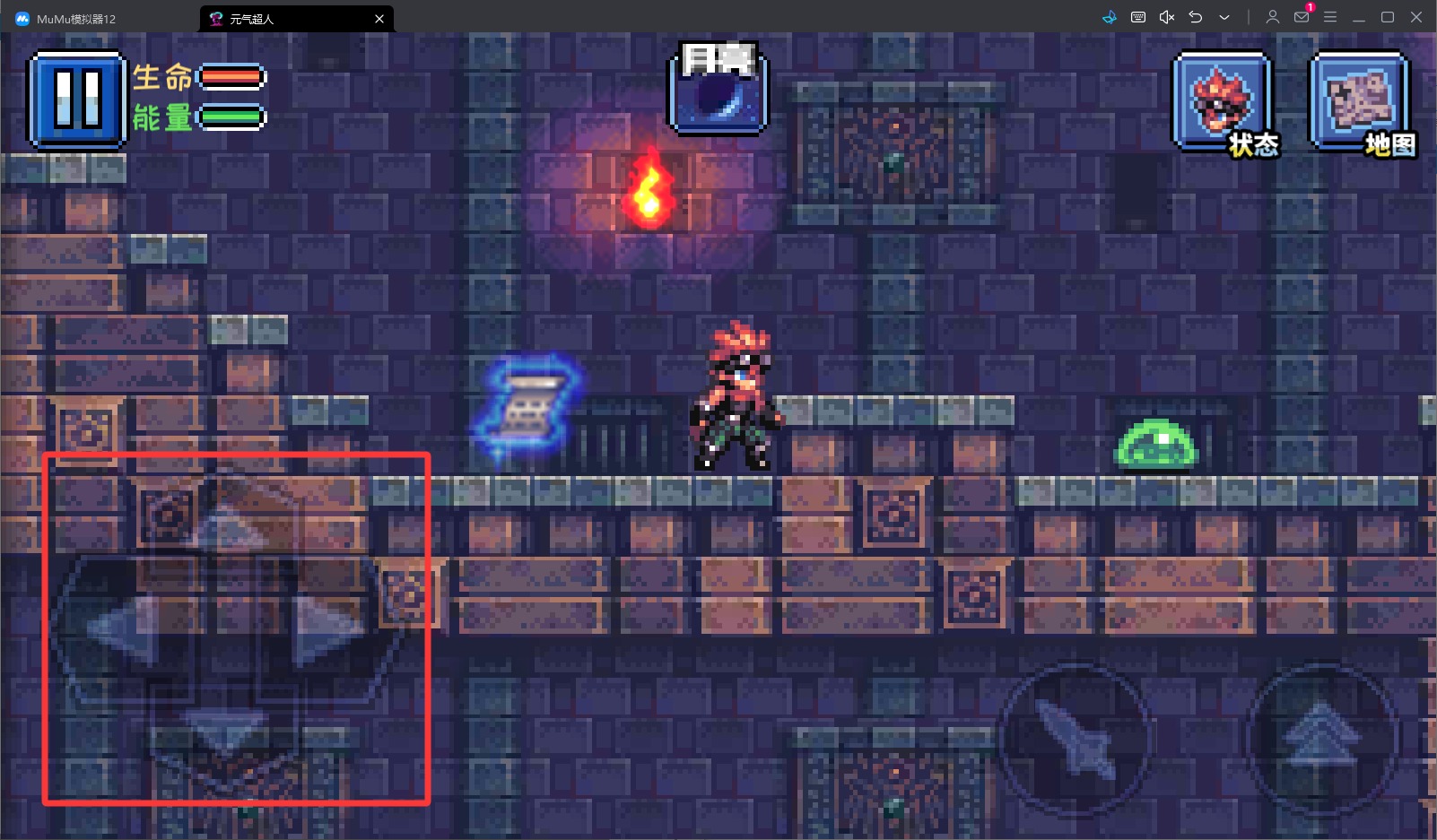 2、通过滑动屏幕左半区域控制元气超人的移动轨迹,在充满陷阱的关卡中灵活走位躲避障碍物与敌人包围。