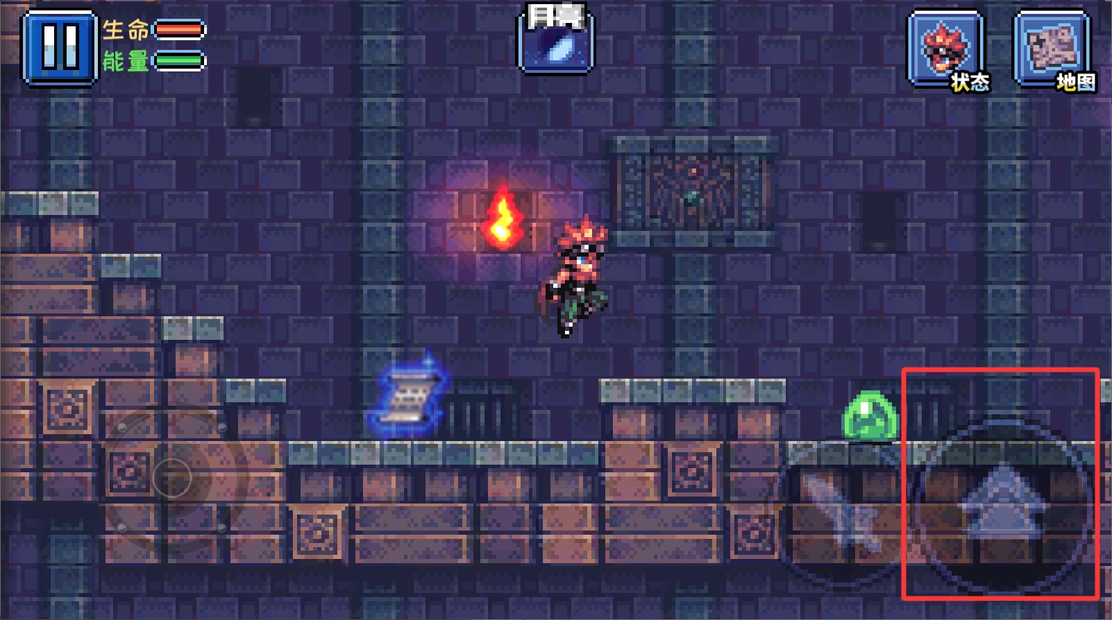 4、适时点击跳跃图标越过地刺与深渊地形,在空中可衔接二段跳机制实现跨平台移动与高空追击战术。