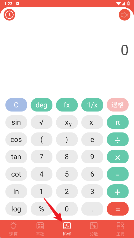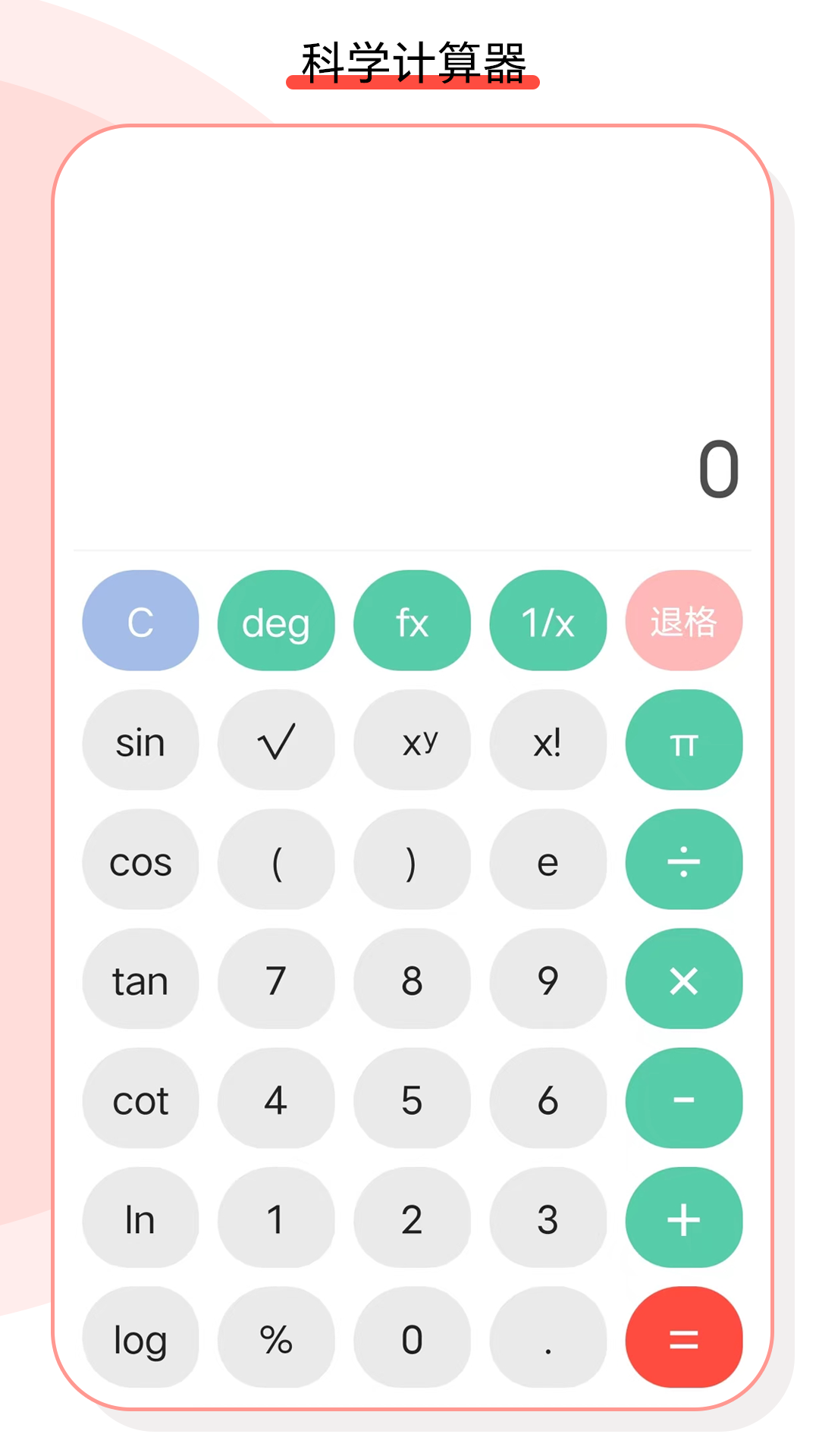 3、科学计算页面支持三角函数、对数、指数等复杂运算,提供丰富按键功能,非常适合学习和科研中的数学运算需求。