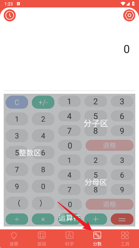 3、提供分数计算模式,帮助用户快速解决分数加减乘除与转换问题。