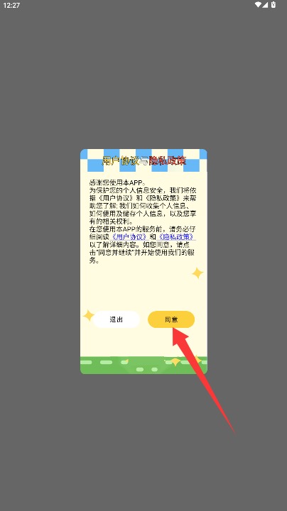 1、初次使用需阅读用户协议与隐私政策,确认无误后点击同意按钮进入应用。
