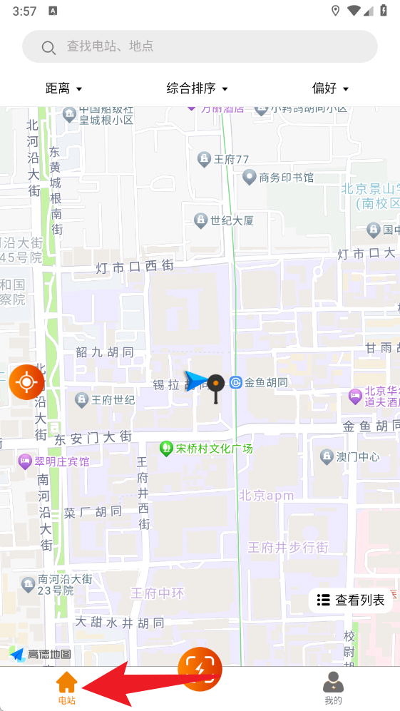 2、进入电站界面,地图上会显示周边充电站位置,用户可直观查看并选择目标站点。