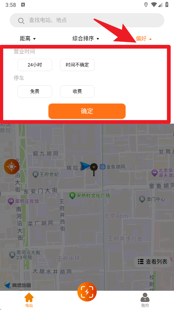 5、点击“偏好”选项,可选择营业时间及停车收费偏好,如“24小时、免费停车”,提升使用体验。