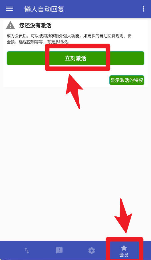5、会员页面提供立即激活选项,开通后可享受更多高级功能,如远程控制自动回复和更强大的安全设置。