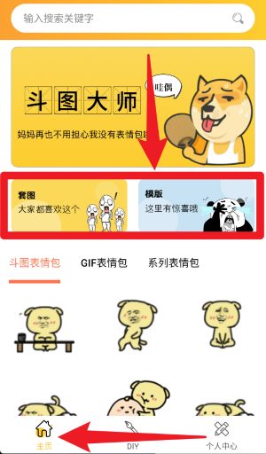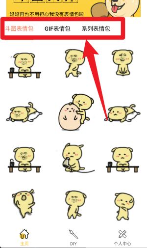 2、继续下滑页面,可在“斗图表情包”、“GIF表情包”与“系列表情包”间自由切换,快速找到想要的类型内容。