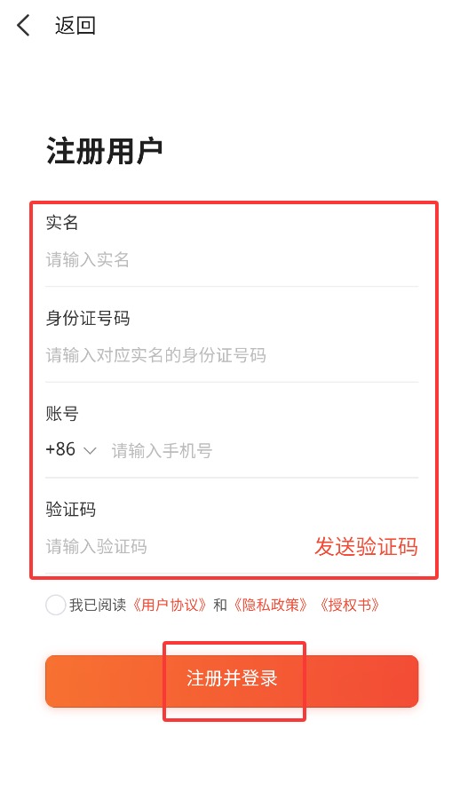 3、填写真实姓名、身份证号、手机号(需短信验证),提交后系统自动核验身份信息。