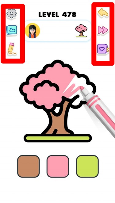 1.界面两侧提供多种功能按钮,包括设置、图库、画笔与撤回操作,玩家可随时调整,轻松完成涂色创作与保存。