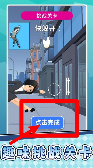 1.挑战关卡中玩家需要在提示下快速"点击完成"动作,灵活闪避掉落障碍物,充分考验反应速度与专注操作的综合能力。