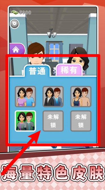 3.装扮系统:提供普通与稀有两类个性皮肤,玩家可自由收集与搭配,让角色形象更具个性化,增加了持续游玩的趣味性。