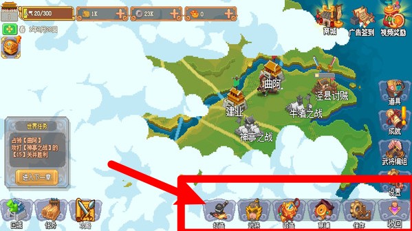 2.在世界地图中玩家可自由选择不同战役与任务,利用下方功能菜单进行调兵遣将,逐步扩张势力范围并夺取战略要地。
