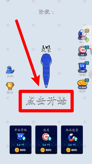 1.进入主界面后点击屏幕中央的开始按钮,即可控制小蛇投入战斗,从零开始不断成长,迎接全新的冒险挑战。