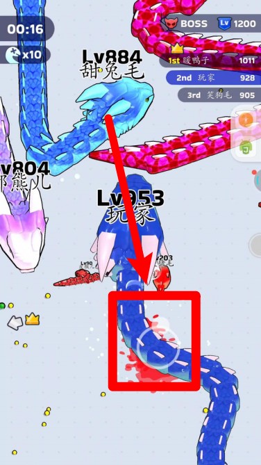 2.通过屏幕的虚拟摇杆灵活操控小蛇移动方向,精准走位避开危险,同时寻找机会进攻,保持生存与成长。