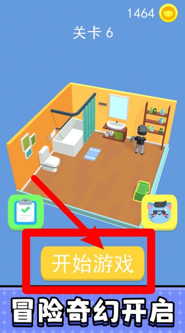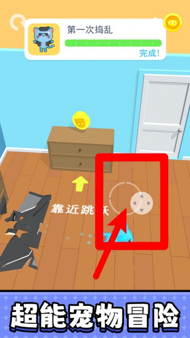1.点击开始游戏进入冒险关卡,操控萌宠角色在房间中自由探索,完成各种趣味任务与挑战。