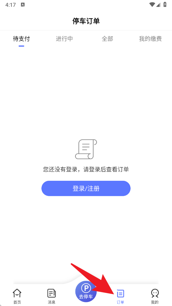 5、在订单页面,用户可以查看停车订单详情,包括待支付、进行中和历史记录,方便统一管理。