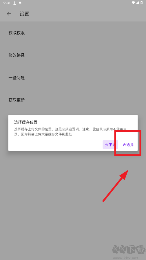 4、点击“去选择”按钮,开始选择下载文件夹地址。