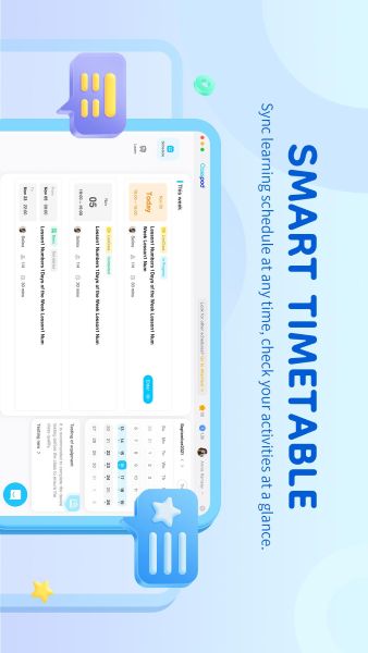 支持直播学习、资料阅读、追踪班级学习活动完成进度等多种教育场景的在线学习工具,可以在这里和老师进行互动,与老师积极地进行沟通交流。