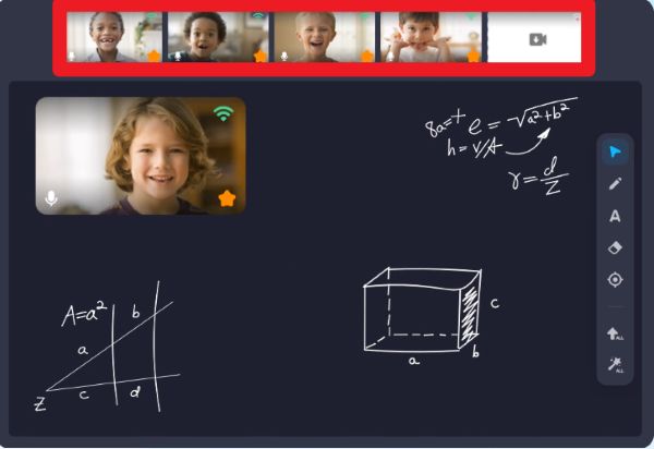 3、登录成功后进入教室界面,主讲老师和学生的视频画面将同步显示于上方,支持多人互动在线教学。