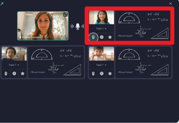 4、点击每位学生的视频画面,可查看该学生当前的学习状态和白板互动内容,教师可实时点评指导。