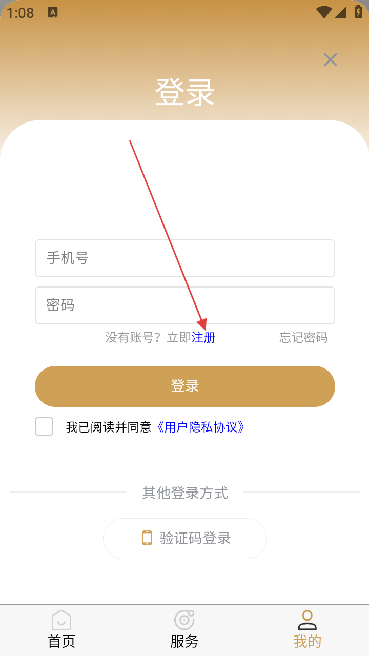 3、登录界面可输入手机号、密码登录,若没有账号,点击【立即注册】进入注册页面。